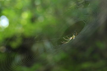 登山道のクモの巣をトレッキングポールで払いながら進む。 |