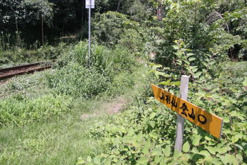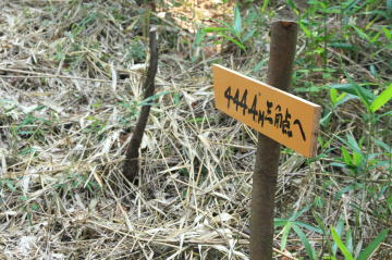 植林帯を抜けると前方が開け黄色い表示板が立てられていた。 |