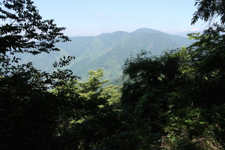 主稜線手前で東側の展望が開け、天狗寺山(テングウギヤマ)が目の前に現れた。 |