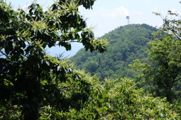 この場所は滝尾登山口から続く登山道との分岐地点だった。 (AM8:20) (正面奥に天狗寺山) |