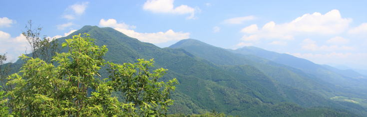 声ヶ乢に下山途中、青空に映えた那岐三座がとても綺麗だった。 |