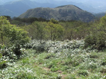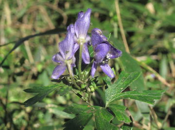 三角点の脇に咲いていたトリカブトの一種サンヨウブジ これは無毒のようです。 |