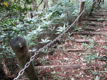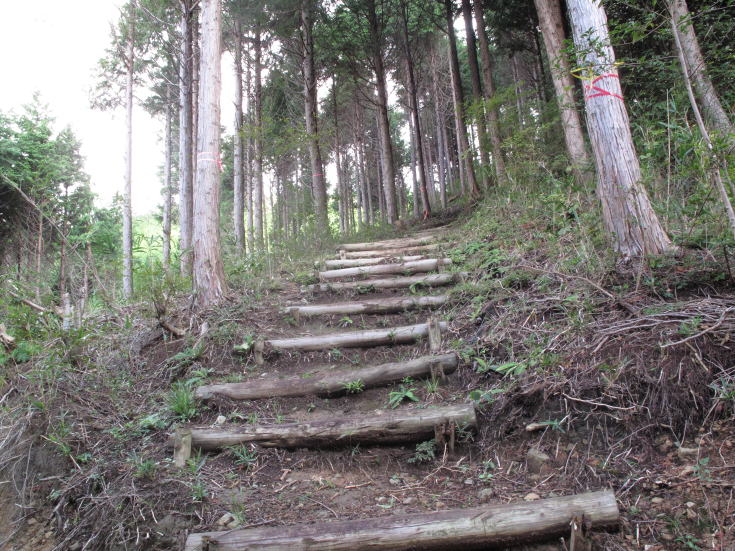 滝山から広戸仙までの丸太の階段は間隔が狭すぎです。 こんなに狭くする必要があるのだろうかと首を傾げてしまう。 とにかく歩きにくいです。 |