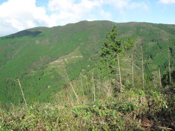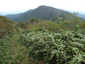 山形仙をしばらく登って振り返るとこれまで歩いてきた那岐三座が… ここまで来ると何とも感慨深いです。 |