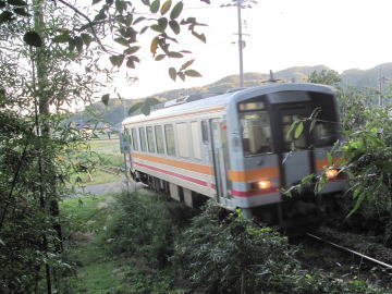 滝尾登山口 (PM5:02) ちようど汽車が通過して行きます。 |