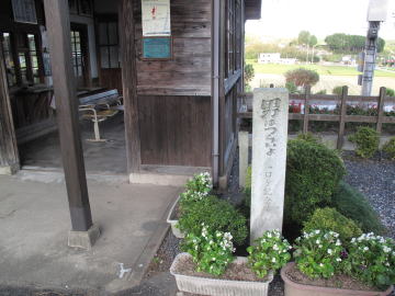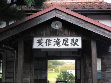 映画 『男はつらいよ』 のロケ地になったJR美作滝尾駅 (PM5:13) ようやく長い長い道のりのゴールに選んだ美作滝尾駅到着です。 今でも裸電球が夜の駅舎を照らしているのでしょうか。 まるで数十年前にタイムスリップしたようです。 |
