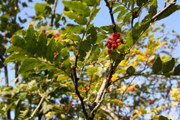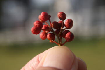 途中で山椒の実が真っ赤に色づいているのを発見! 少しばかりお土産に頂いた。 |