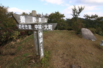 山頂にご覧のような注意書きの立て札が立っていた。