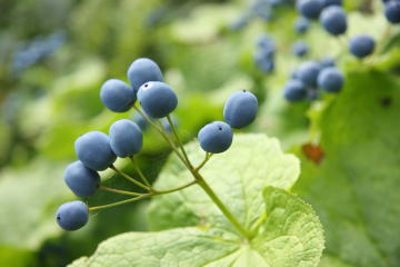サンカヨウの実 ブルーベリーを思わせるようなおいしそ〜な実は 食用になるというが、果たしてそのお味は? |