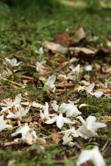 登山道に落ちたエゴノキの花 見上げればまだたくさん花を付けていた。 上の画像にマウスポインタをどうぞ! |