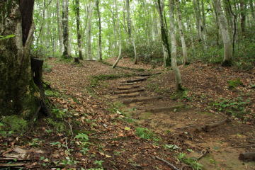 | 今回は時計回りに縦走しようと、きたけ峰に向かった。 もう蝉がせわしなく鳴き始めていますね。 真夏を思わせる暑さに20〜30分も歩くと汗が噴き出してきた。 |
