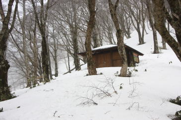 これは避難小屋の中です。 途中、団体さんに道を譲ってい頂き、 どうやら一番乗りだったようです。 |