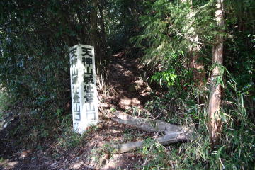 神社の左側奥に立つ登山口の看板のところから歩き始めました。