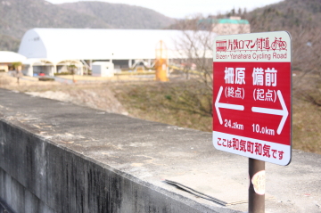 廃線となった片上鉄道跡地に作られたサイクリングロード(通称 片鉄ロマン街道)を
