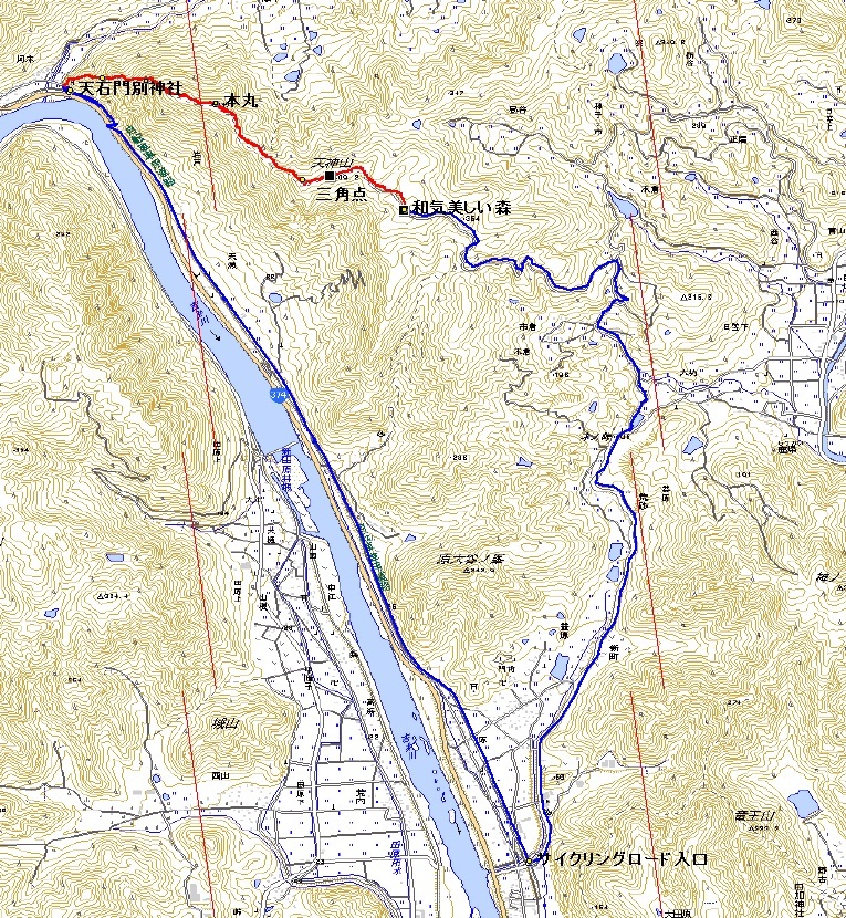 北上して登山口となる河本地区の天石門別神社を目指します。 (AM9:30) |