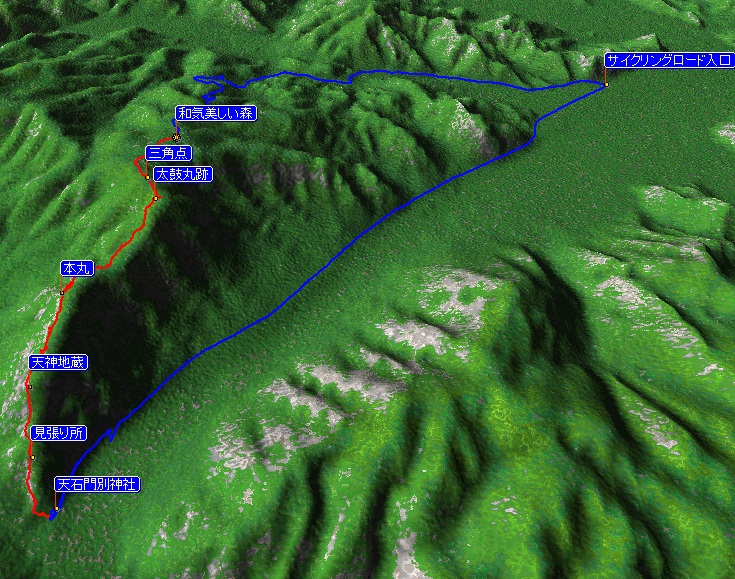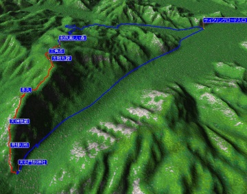 | 上の画像にマウスポインタをどうぞ。 「この地図の作成に当たっては、国土地理院長の承認を得て、同院発行の数値地図25000(地図画像) 及び数値地図50mメッシュ(標高)を使用しました。 (承認番号 平21業使、 第389号)」 |