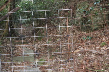 歩き始めてすぐにイノシシ除けの柵に立ち止まりました。 入口は針金で結ばれているのでこれをほどいて中に入ります。 (必ず元どおり結んでくださいね。) |