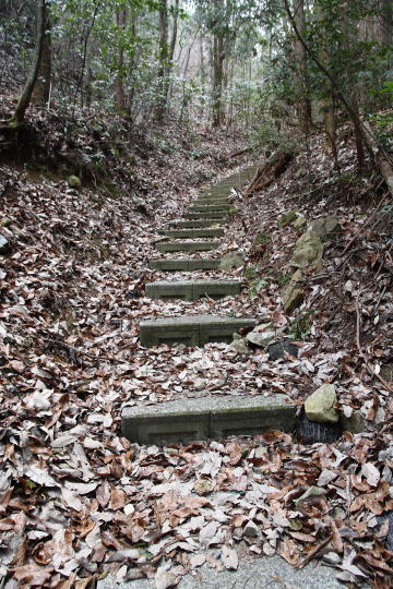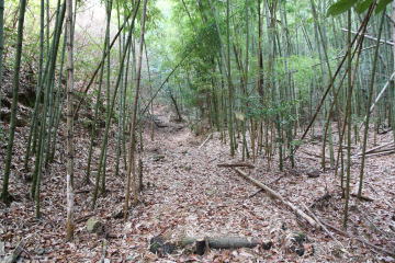 ご覧のような階段が続き、しばらく竹林の中を進むようになります。 |