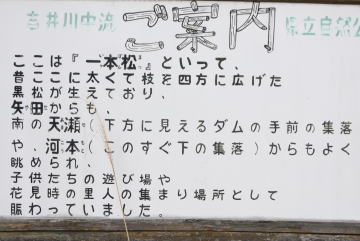 案内板が設置された頃は展望が開けていたようですが、今では樹木に邪魔されて遠くの景色は望めません。 |