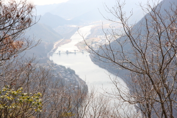 橋のように見えるのは新田原堰(シンタワライセキ)です。 上の画像にマウスポインタをどうぞ。 |