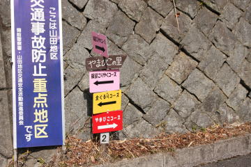 三保高原遊歩道終点 ここは左折して車道を下ります。 |