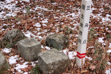 一等三角点の周りに白く見えるのは雪です。 |