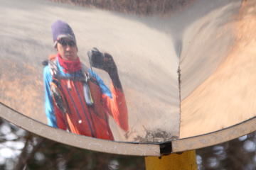 カーブミラーを使って記念写真 |