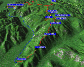 上の画像にマウスポインタをどうぞ。 「この地図の作成に当たっては、国土地理院長の承認を得て、同院発行の数値地図25000(地図画像) 及び数値地図50mメッシュ(標高)を使用しました。 (承認番号 平21業使、 第389号) |