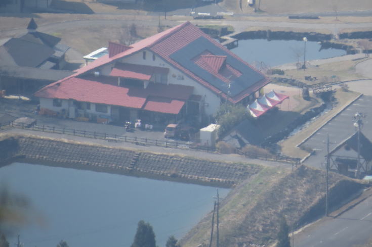 大神岩の上から望遠ズームで山の駅を狙ってみました。 これコンデジなんですよ。 なかなかすごいでしょ! |