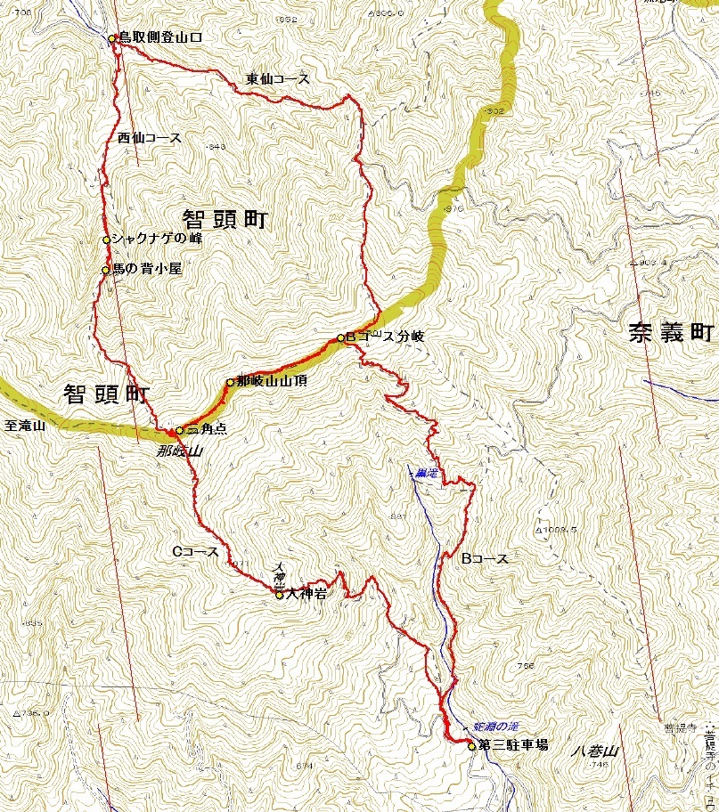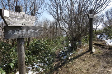 | そろそろ那岐山にイワウチワの花が咲き始めたのではないかと訪ねてみました。 今回は岡山県側のCコースからスタートして稜線登山道を東に進み、鳥取県側の東仙コースを下って 8の字を描くように再び西仙コースから山頂を目指してBコースを下山するという、ちょっと変わった歩き方をしてみました。 |