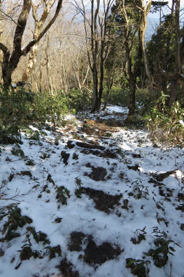登山道には数日前に降ったと思われる雪が残っています。 |