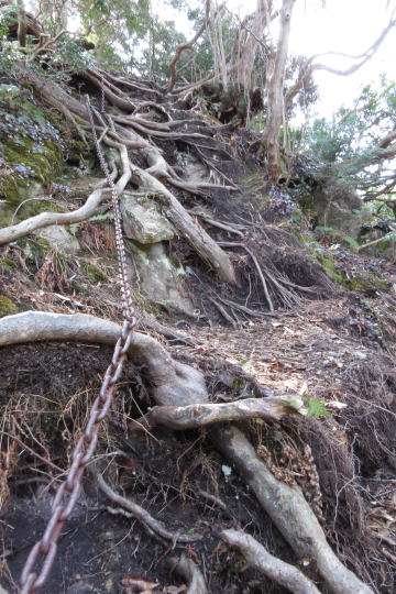 シャクナゲの峰手前の鎖場 この辺りもイワウチワの多い場所です。 |