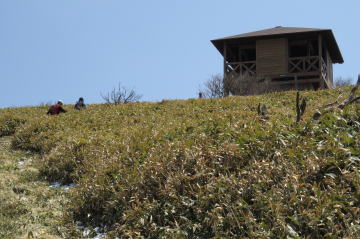 滝山方面を望遠ズームで狙ってみました。 滝山への縦走路に建つ休憩舎です。 上の画像にマウスポインタをどうぞ。 |