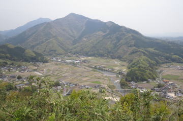 地形図の「切り開き」からの眺望 (AM8:20) 正面は広戸仙、右側は山方仙です。 |