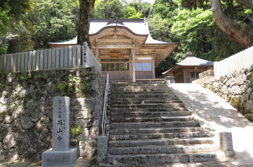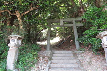大杉の右手の階段を上って鳥居をくぐり小道を進む。 |