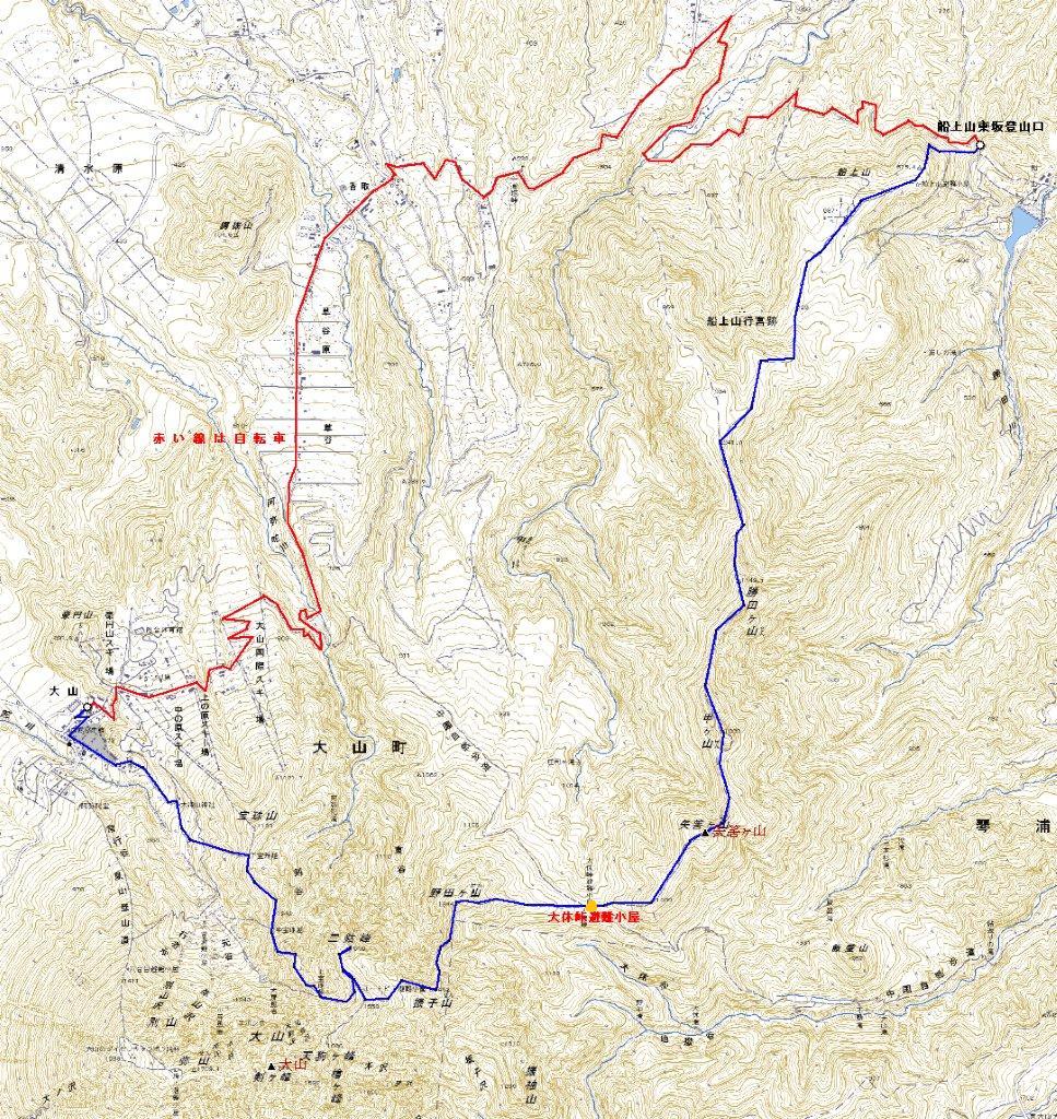 船上山−勝田ヶ山−甲ヶ山−矢筈ヶ山−大休峠−野田ヶ山−振子山−象ヶ鼻−三鈷峰−上宝珠越−下宝珠越−大神山神社