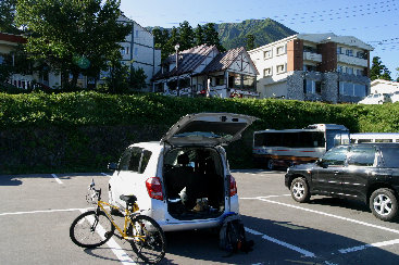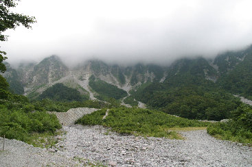 第一駐車場から川床まで約3.5km。 中の原スキー場までの登りは自転車を押すことになるが、 時折吹く風が実に気持ちいい。 川床には帰り支度をされている方の車が1台あるだけだった。 小屋泊まりされたのかと思ったが、早朝から歩き始めたが暑さのため、途中で気分が悪くなって下山されたということだった。 「今日はいつも以上にしっかり水分補給しなければならないな。」 とつぶやきながら歩き始めた。 |