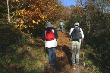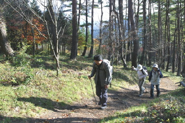 | 紅葉の落ち葉の絨毯を踏みしめながら登山道を行く。 | ||||||||||||||||||||||||||||||||||||||||||