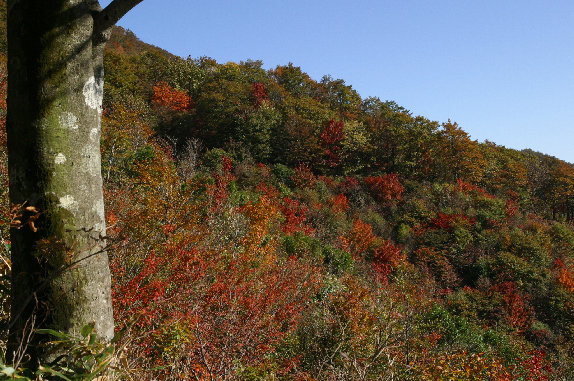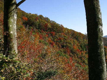 今年は紅葉が遅いと思っていたが、 すでに山はいい色に色づいていた。 |
