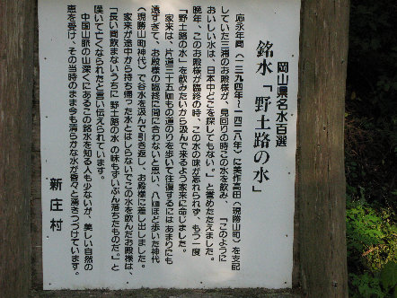 野土路トンネルの手前に湧く 名水「野土路の水」 |