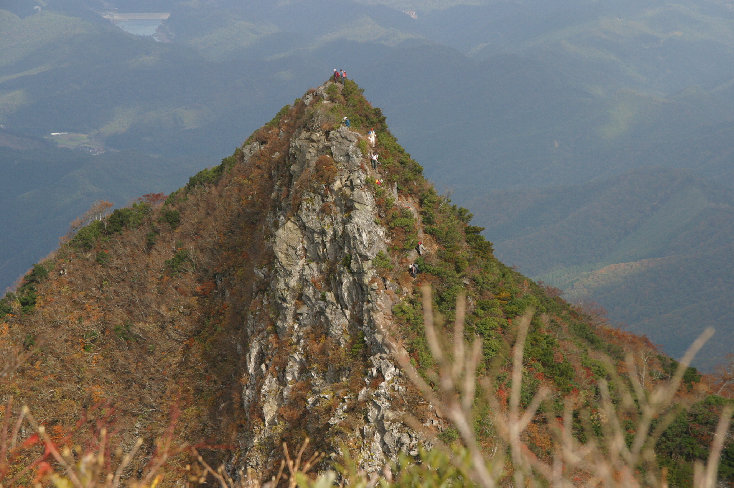 ピラミダルな小矢筈山頂からの展望は遮るものなどない、360度の展望だ。 次々に登山者が山頂を目指している。 (矢筈ヶ山山頂から 12:45) |