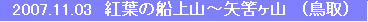 午前5:40 夜明け前だというのに蒜山SAは満車状態だったので驚いた。 紅葉の大山や蒜山への行楽だろうか、京阪神のナンバープレートが目立つ。 このコースは今年の5月20日に歩いたときからロケーションのすばらしさに紅葉シーズンにぜひまた訪れてみたいと思っていた。 今回も川床に車をデポして船上山東坂登山口まで自転車を走らせた。 |