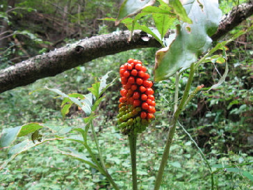 林道工事のため迂回路ができていた。 以前からあったルートなんだろうか。 | マムシグサ | |||||||||||||||||||||||||||||||||||