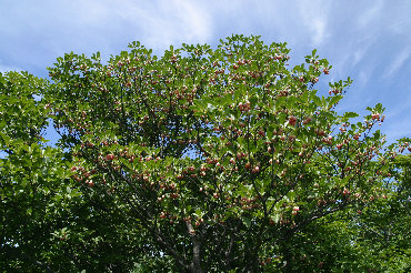 サラサドウダンの花期はすでに過ぎており、かなり花は落ちていたが満開の木を見つけて写真に収めることができた。 那岐山同様、花を付けなかった木も多く見られた。やはり今年は裏年のようだ。 |