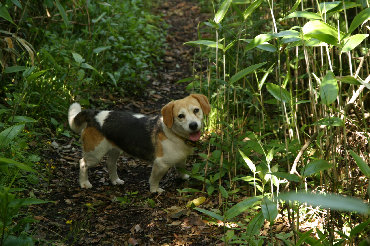 途中で一匹のビーグル犬に出会い、一緒に歩いてもらうことができた。 とてもかわいい犬だ。 おそらくご主人は途中で追い越した方だろう。 主人を心配して何度も立ち止まり、そして登ってきた登山道を主人の様子を伺いに下って行く。 しばらくするとまた私に追いつき一緒に歩き始める。 何度もこれを繰り返しながら歩き続けた。 この犬は何度もこの山を歩いているのだろう。 道に迷うこともなく、私よりも先に井水山に到着して主人の到着を待っていた。 ここから先は私について来ることはなく、主人の到着をひたすら待っているようだった。 思いがけない同伴者にとても楽しい山歩きができた。 |