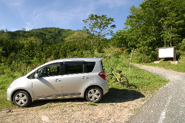 笠菅峠から奥津中学校までの約13.5kmは下りなので鼻歌を歌いながら自転車を漕いで行けたが、残る1.5kmの上りはかなりきつかった。 耐え切れず神社手前で自転車をあきらめて歩くことにした。 神社の駐車場にはすでに10台前後の車があり、この山の人気の高さが伺える。 |