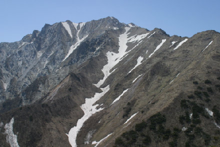振子山から天狗ガ峰、槍ガ峰を望む。 すばらしい景色だ。 |