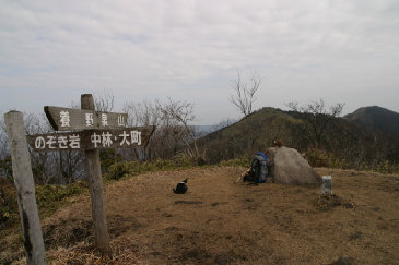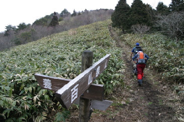 泉山と百乢との分岐 百乢への道は整備されておらずヤブ漕ぎとなっている |