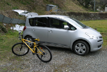 自転車は「DOPPELGANGER 21段変速 クロスバイク」 息子がインターネットで見つけてくれたものだ。 値段の割りにしっかりしているので驚いた。 星山ビジターセンターに自転車をデポして櫃ヶ山登山口に車を走らせる。 その距離約17.5km。思っていた以上に遠い。 そのうえ国道313号線は車がビュンビュン飛ばすので縦走のことより果たして無事に自転車で戻れるだろうかという不安でいっぱいになった。 |