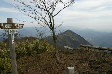星山山頂からは360度の展望だ。 はるか向こうに櫃ヶ山が望めた。 あそこから歩いてきたのだ。 |